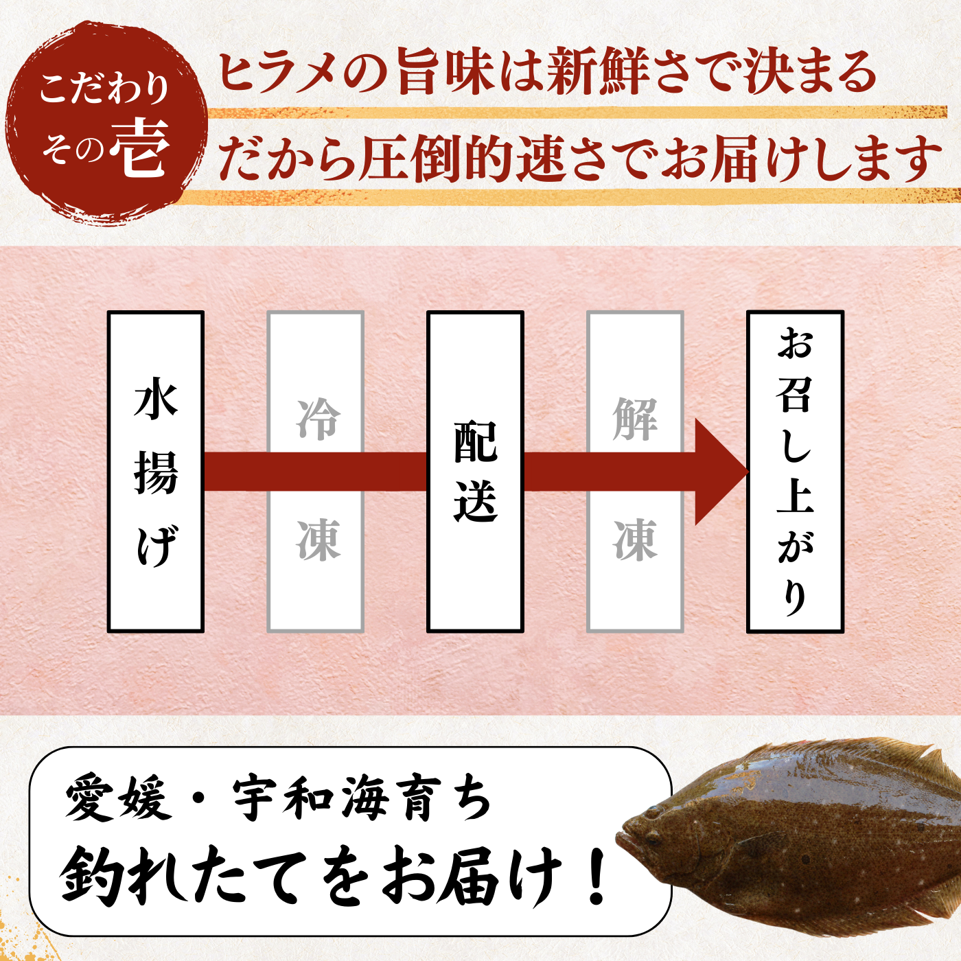 ヒラメは上質な旨味とさっぱりとした後味が特長で、どの料理にも合わせやすく、様々なアレンジが可能です。